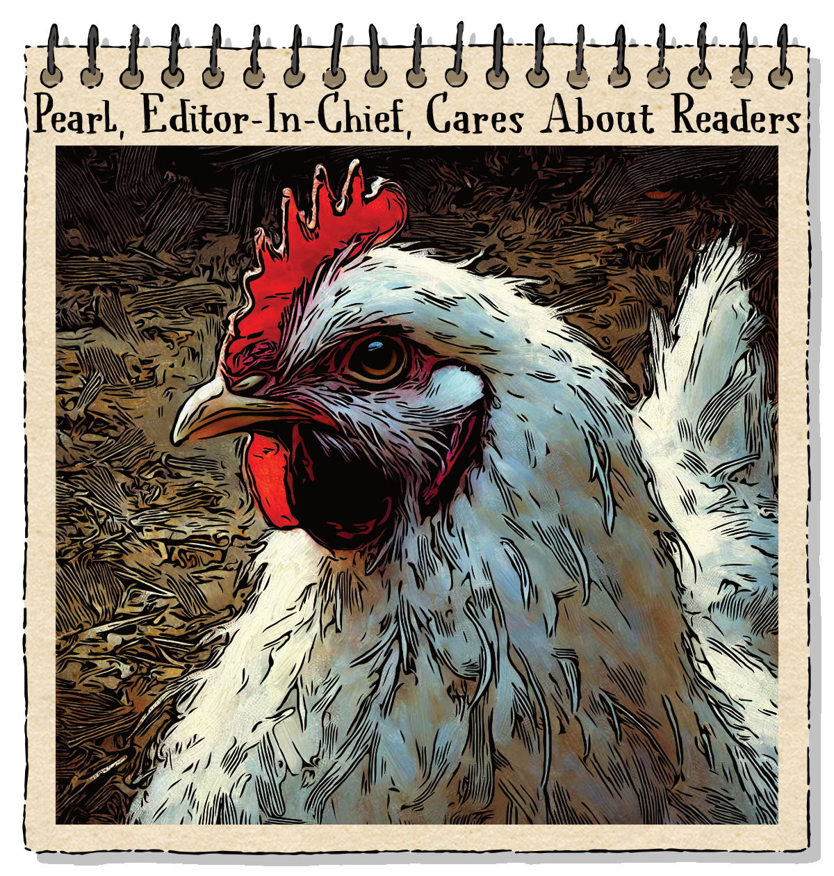 Pearl particularly enjoys hearing from our fans! We did have a form for this, however recently we had an incident of Identity Theft. We want to protect ourselves and the folks we care about like our family, friends, and fans. (Who would ever want to steal the identity of a humble backyard chicken?!?)